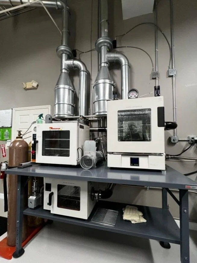 We have all of the coating equipment needed to create anodes of various loadings for testing. All assembly is done in an Argon filled glovebox.